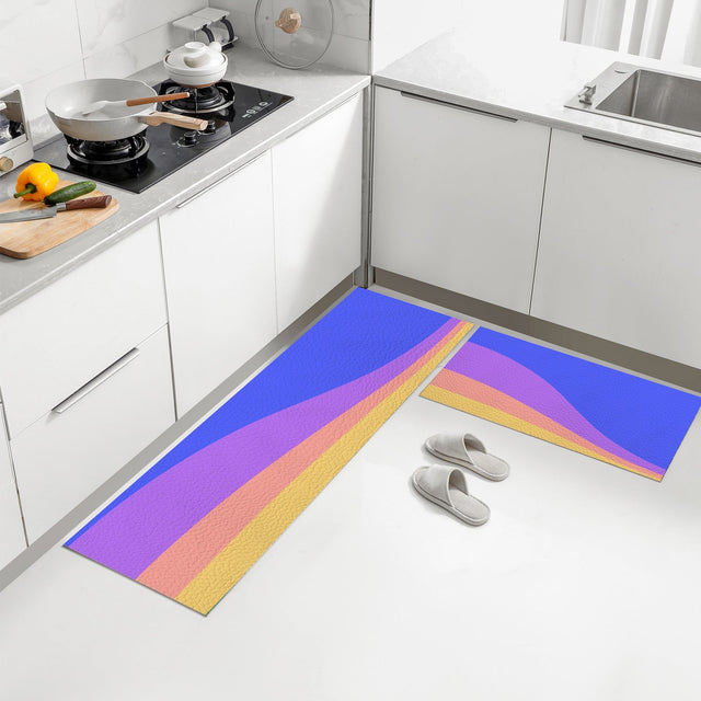 Feblilac Blue Purple Mountain PVC Leather Kitchen Mat