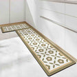 Feblilac Brown Flower Leaves Geometric Pattern PVC Leather Kitchen Mat