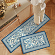 Feblilac European Classical Geometry Blue Pattern PVC Leather Kitchen Mat