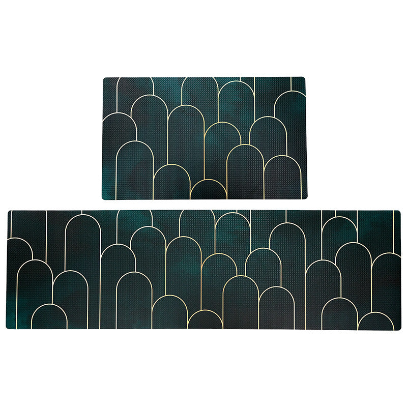 Feblilac Green Golden Abstract Door Pattern PVC Leather Kitchen Mat