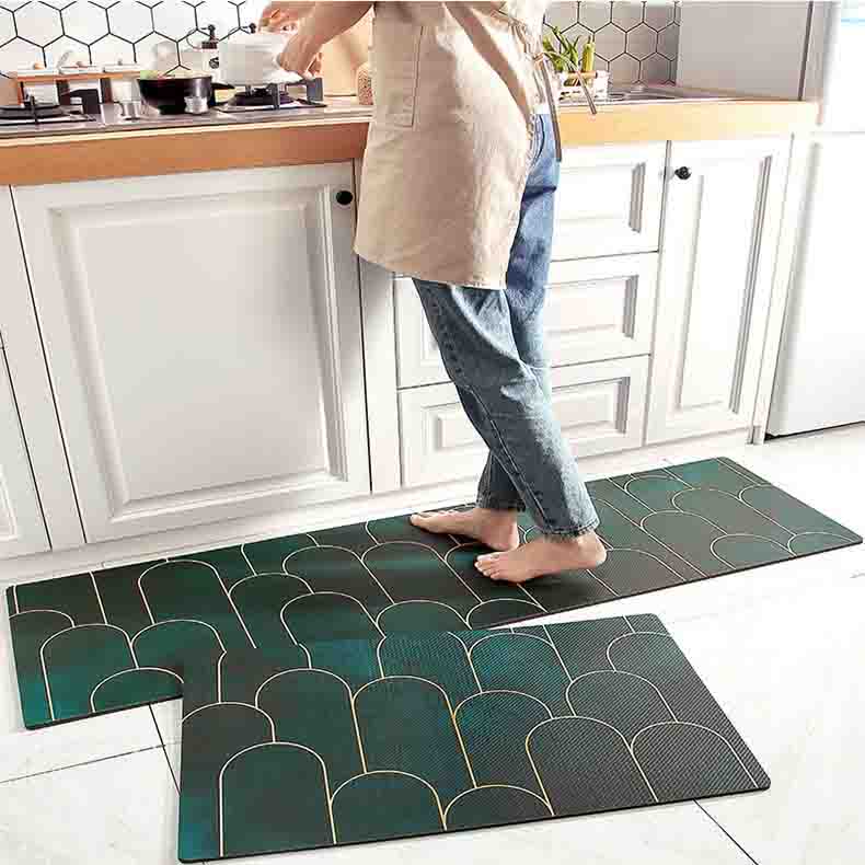 The Feblilac Green Golden Abstract Door Pattern PVC Leather Kitchen Mat is easy to use, and it's also a wonderful décor to your home.