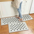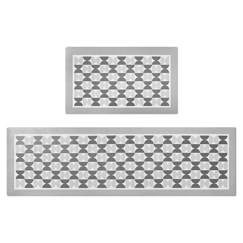Feblilac Grey and White Geometric Pattern PVC Leather Kitchen Mat