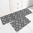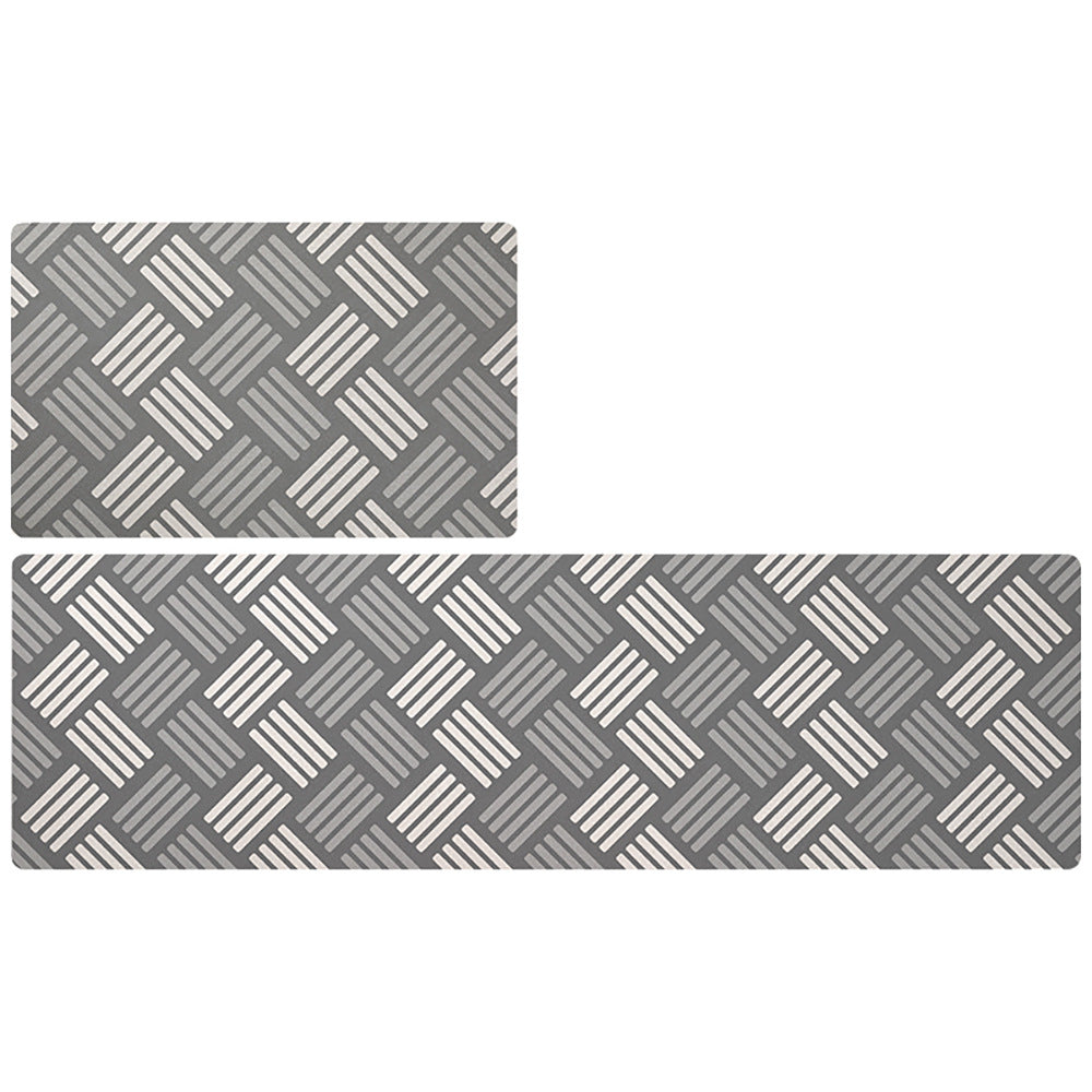 Feblilac Grey and White Lines Geometric Pattern PVC Leather Kitchen Mat