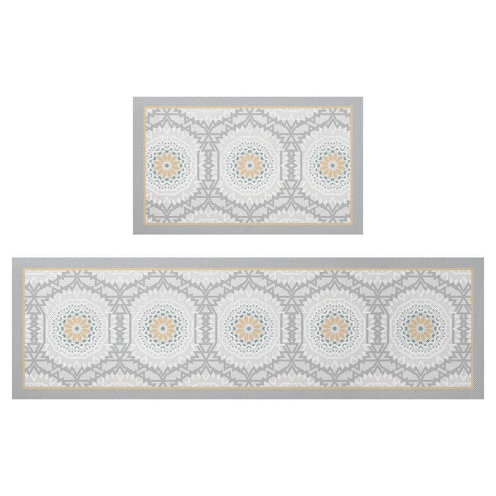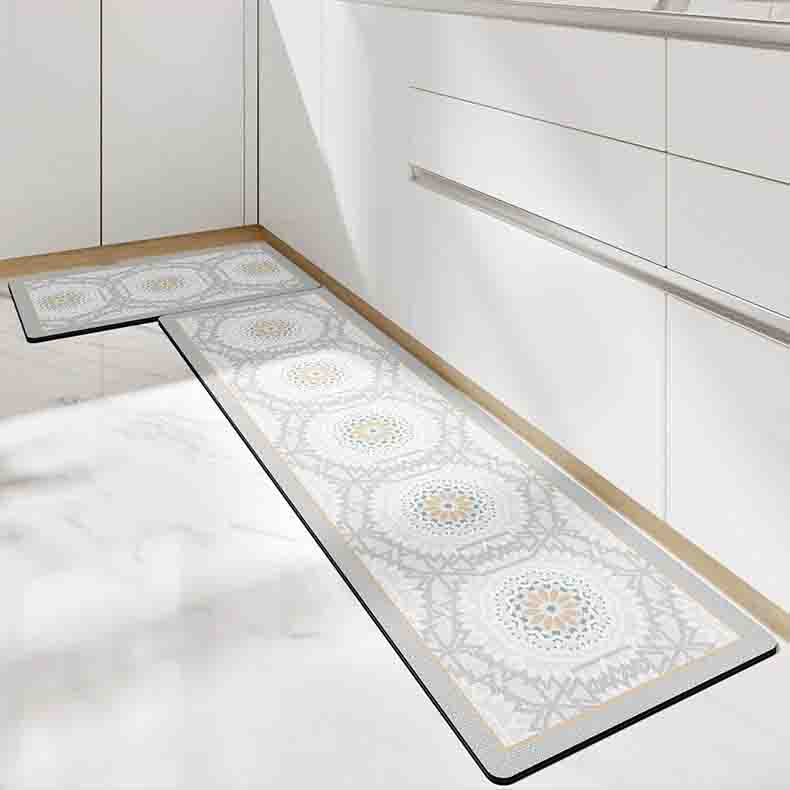 Feblilac Grey Flower Geometric Pattern PVC Leather Kitchen Mat