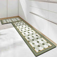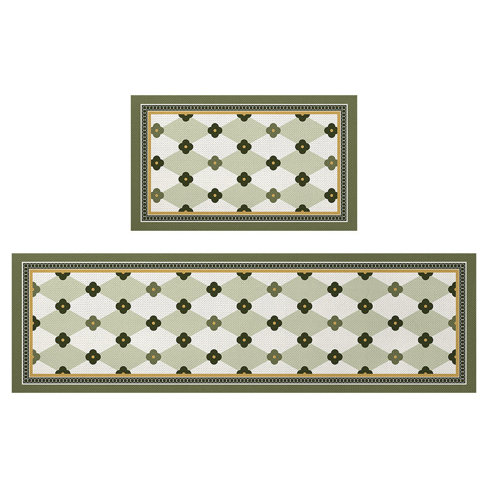 Feblilac Jasper Darker Green Flower Geometric Pattern PVC Leather Kitchen Mat