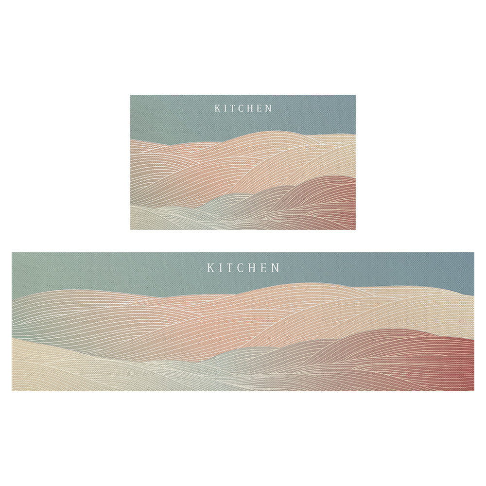 Feblilac Red Yellow Green Abstract Mountains Wave PVC Leather Kitchen Mat