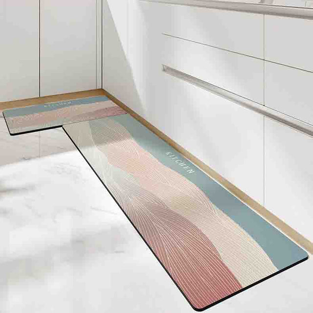 The Feblilac Red Yellow Green Abstract Mountains Wave PVC Leather Kitchen Mat is easy to use, and it's also a wonderful décor to your home.