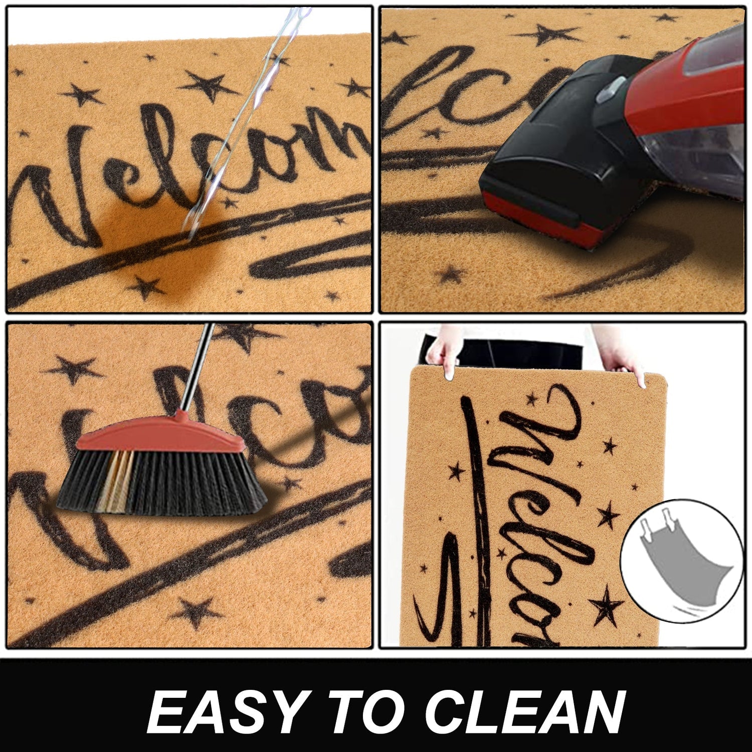 3. Easy to Clean: The front door mat is also easy to clean, simply shake or sweep away all dirt and debris and rinse with water. Place welComes mats at any entrance! Ideal as indoor mats for the entryway or as outdoor front porch decor.
