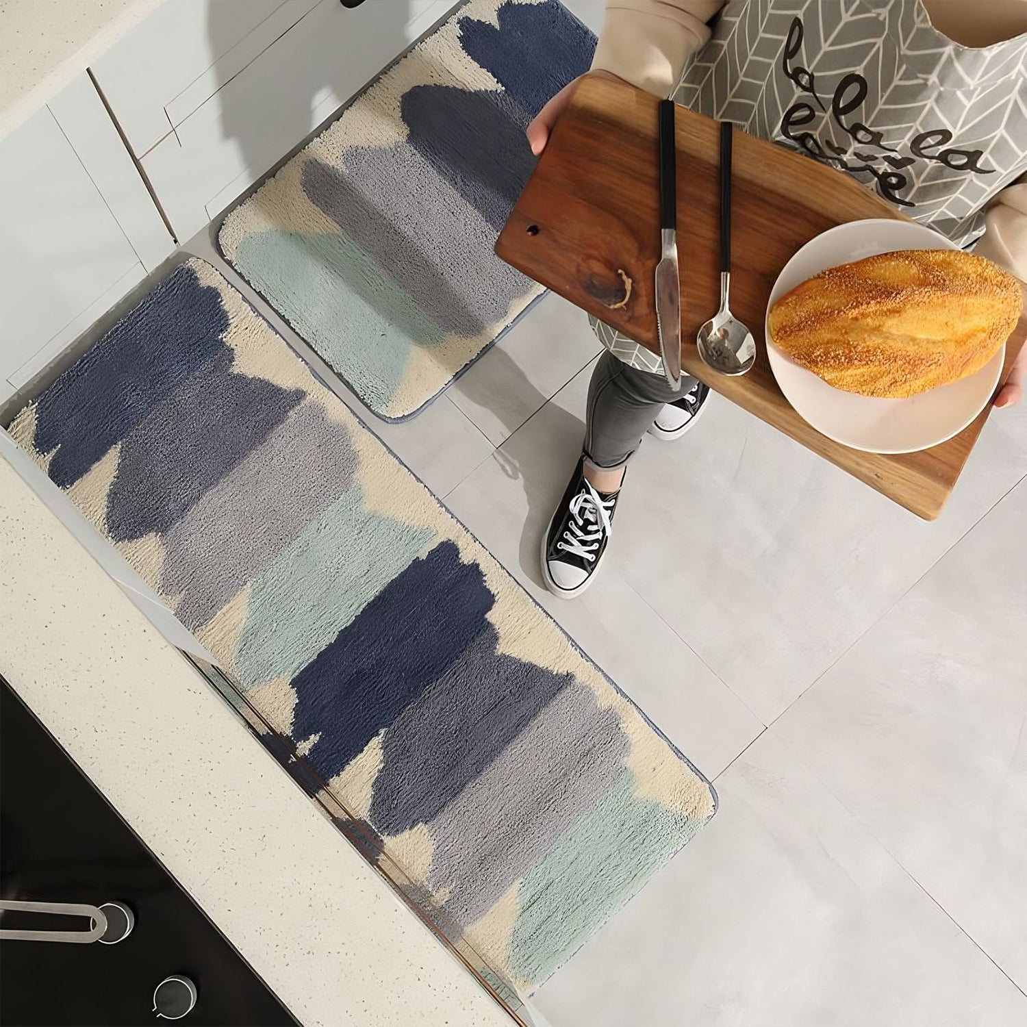 Super Absorbent: The microfiber surface of the super absorbent kitchen mat quickly absorbs large amounts of moisture and dries quickly for a healthier environment and ultimate comfort.