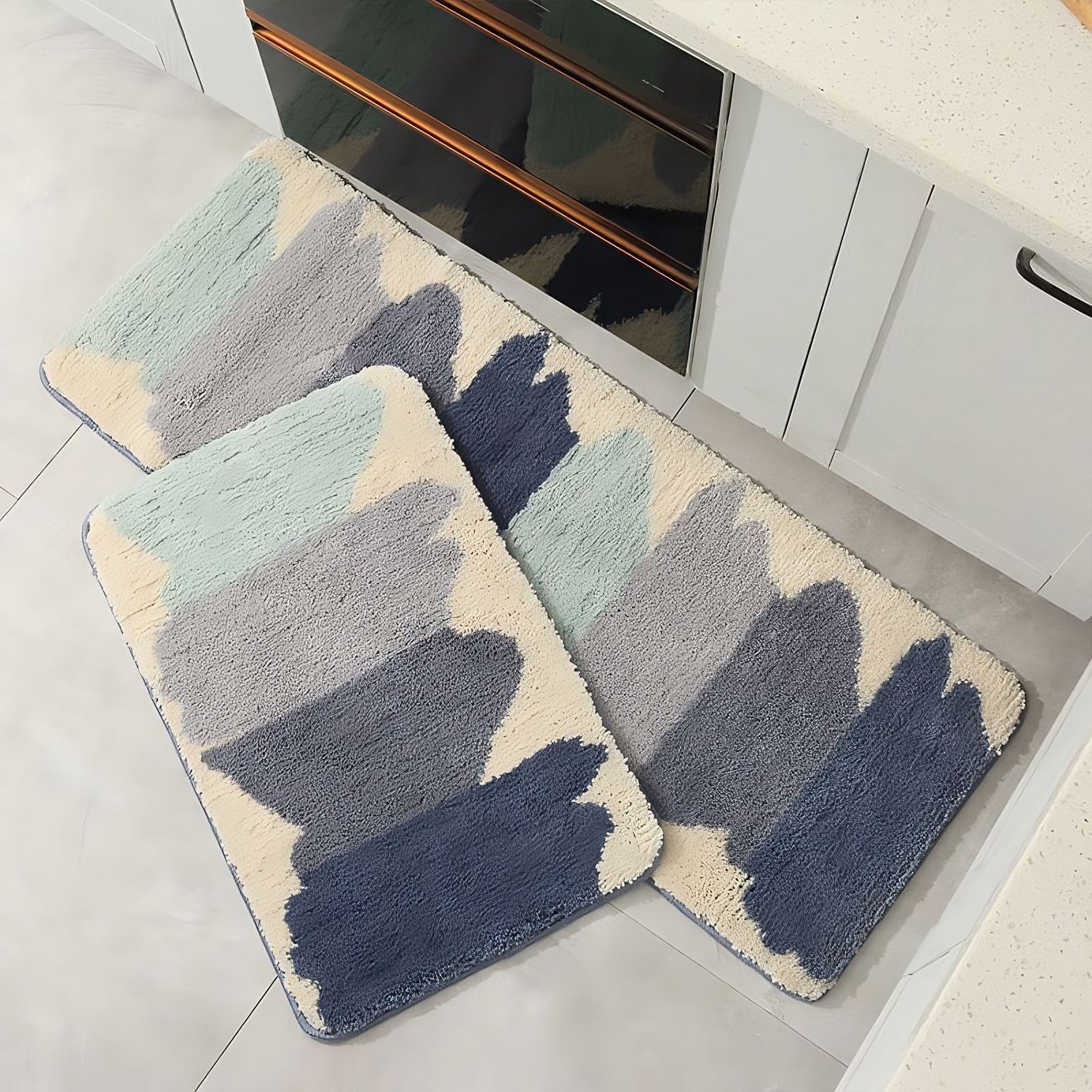 Before placing the absorbent bath rug for bathroom on the floor, please make sure that the ground where it will be placed should be clean, flat and dry.