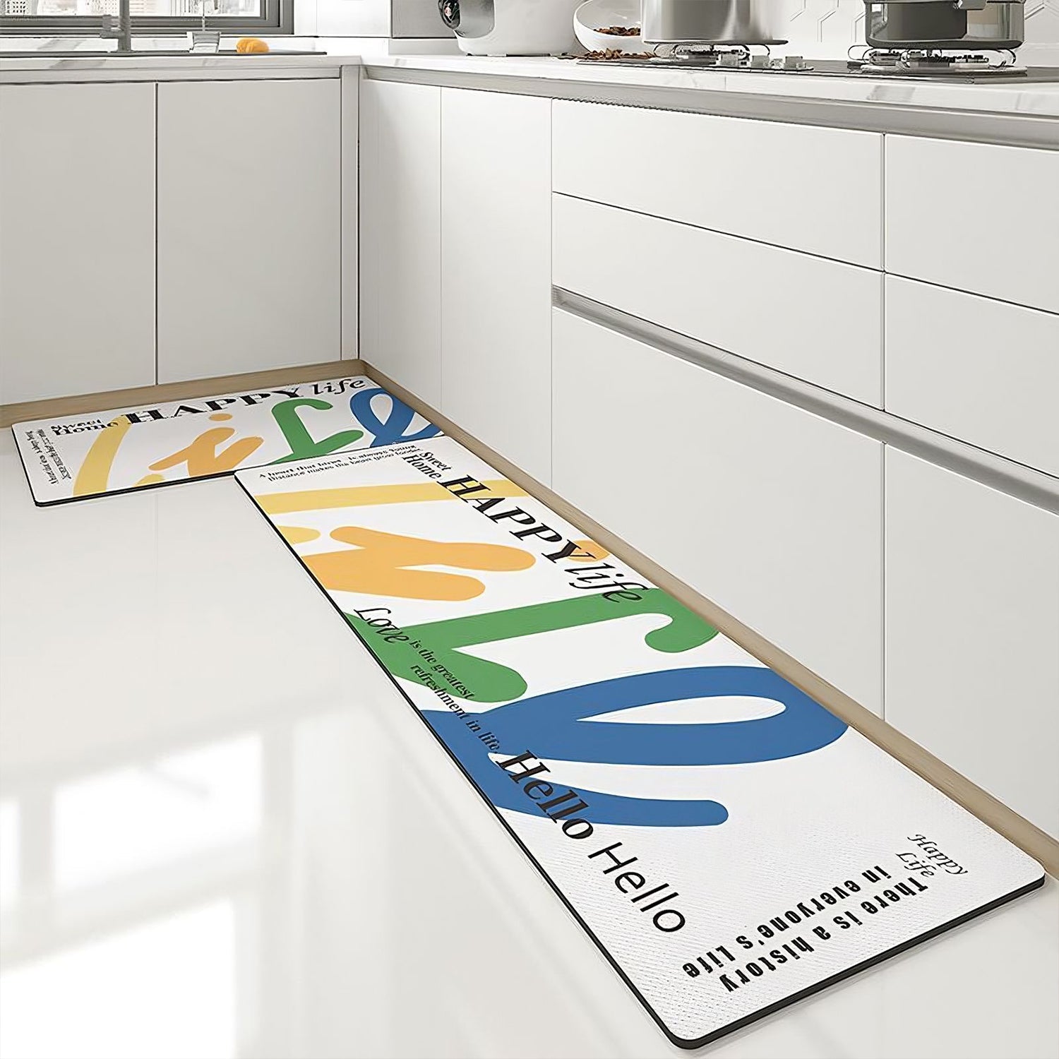 Versatile: Two-piece kitchen rugs come in sizes 17.7""x29.5""and 17.7""x59"". Warm-colored rugs complement the kitchen and are perfect for home use.