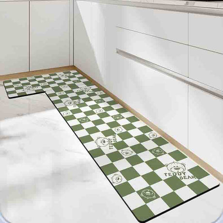 De $37.00 USDPrix unitaire /IndisponibleFeblilac Green White Checkerboard and Bear PVC Leather Kitchen Mat