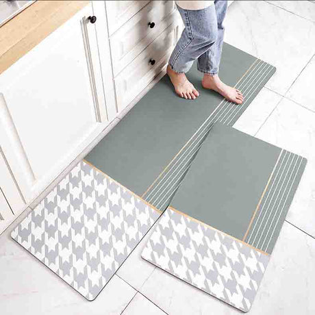 Feblilac Grey and Golden Line Art PVC Leather Kitchen Mat