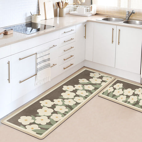 De $37.00 USDPrix unitaire /IndisponibleFeblilac White Flower Line Dark Grey Ground PVC Leather Kitchen Mat