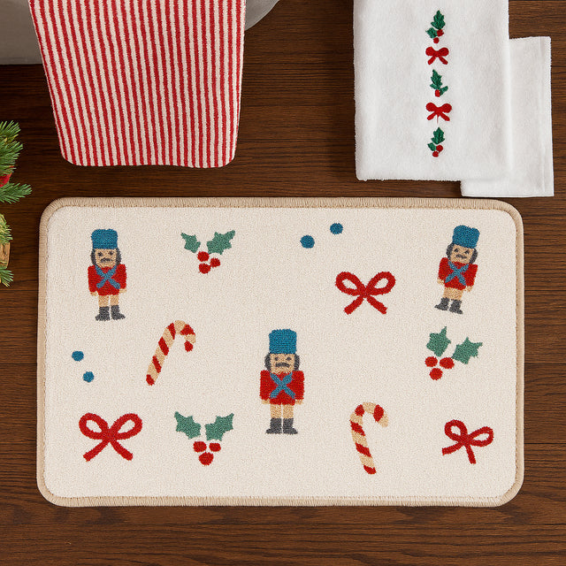 Feblilac Nutcracker Christmas Bath Mat – Festive Tufted Holiday Bathroom Rug