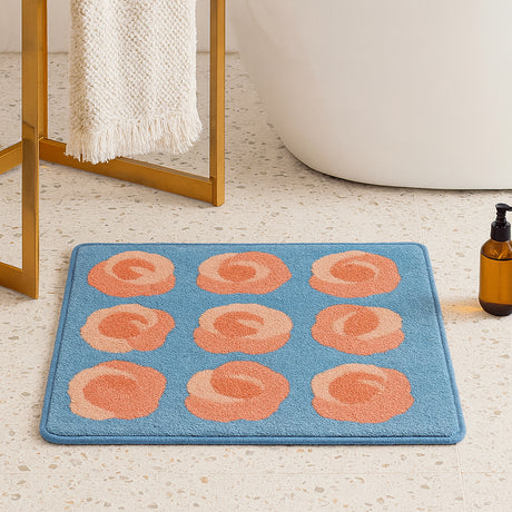 Feblilac Floral Pink Rose Tufted Bath Mat – Soft Square Rug for Bathroom or Bedroom