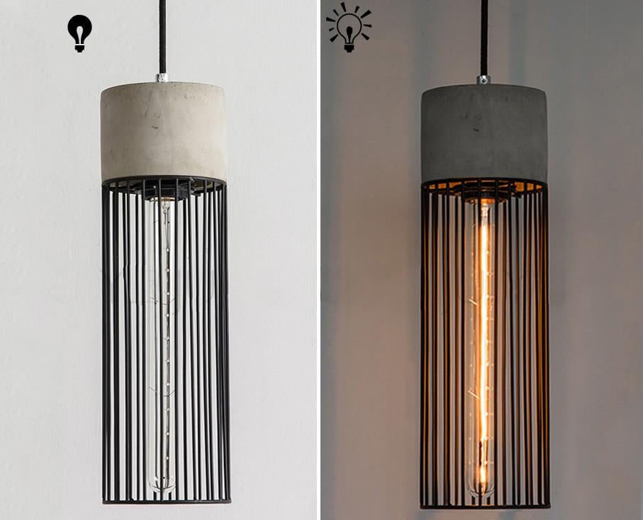 Minimalist pendant light combining concrete cement and steel cage. This industrial-inspired pendant light is the ideal complement to instantly add character to your space.