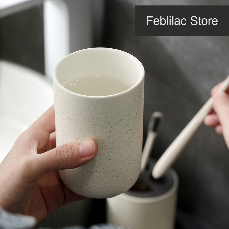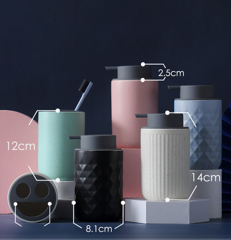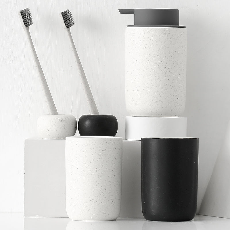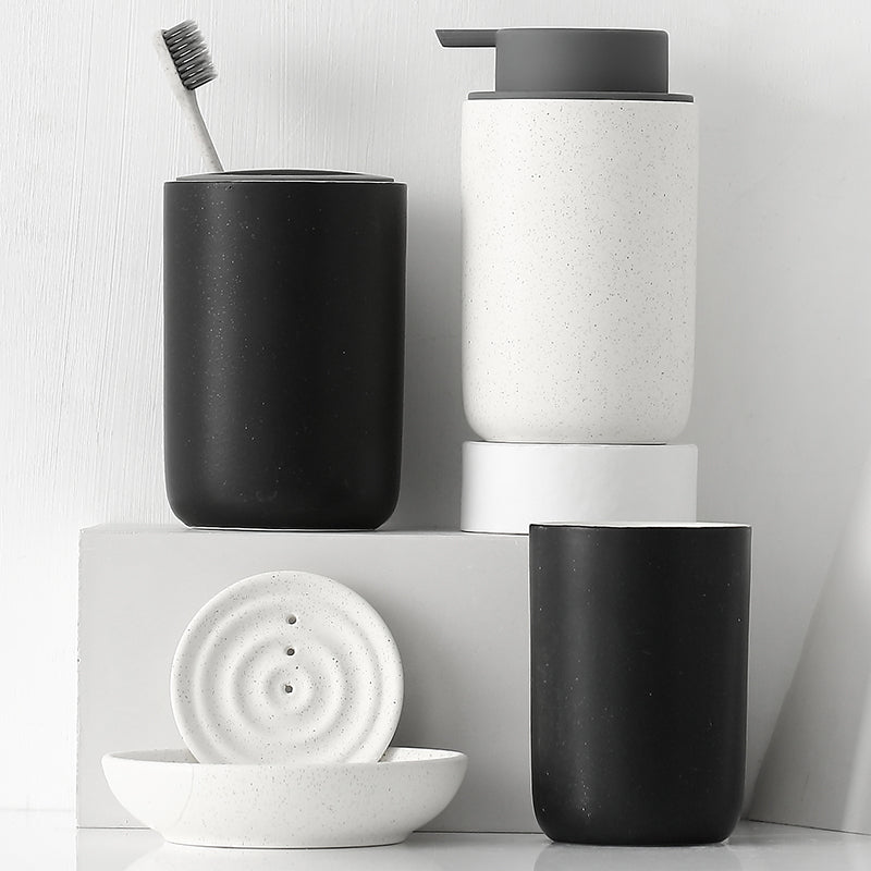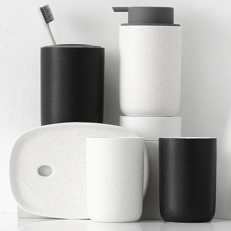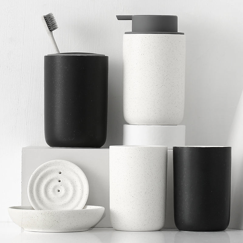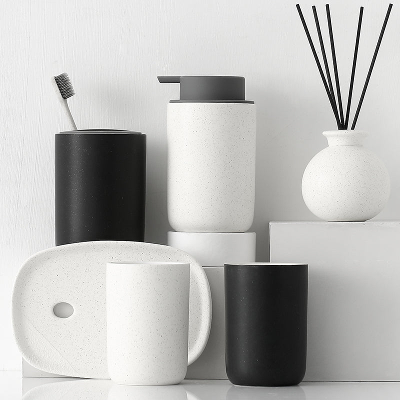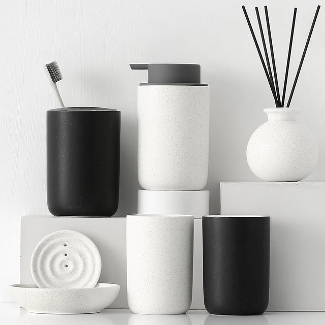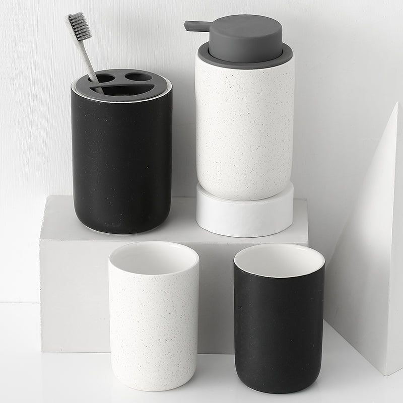 Black and White Bathroom Dispenser Mug Set