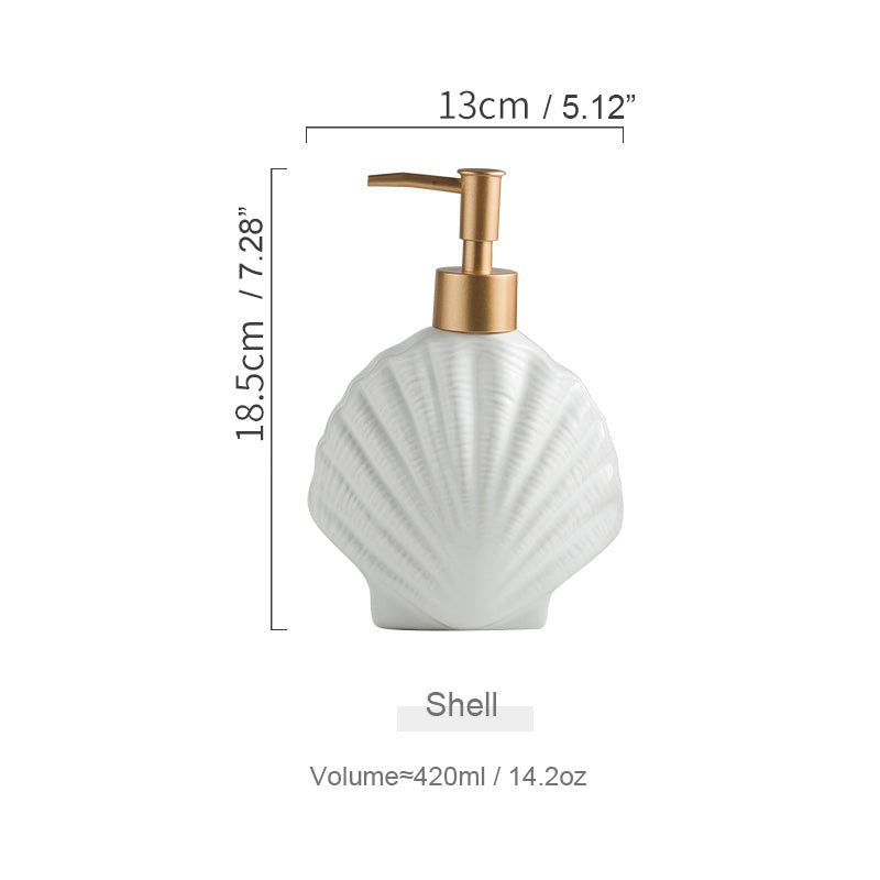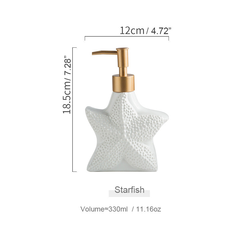 This soap dispenser provides your bathroom with fresh ocean taste. With high-quality ceramic and waterproof pump, it's also a perfect gift to anyone you love and care.