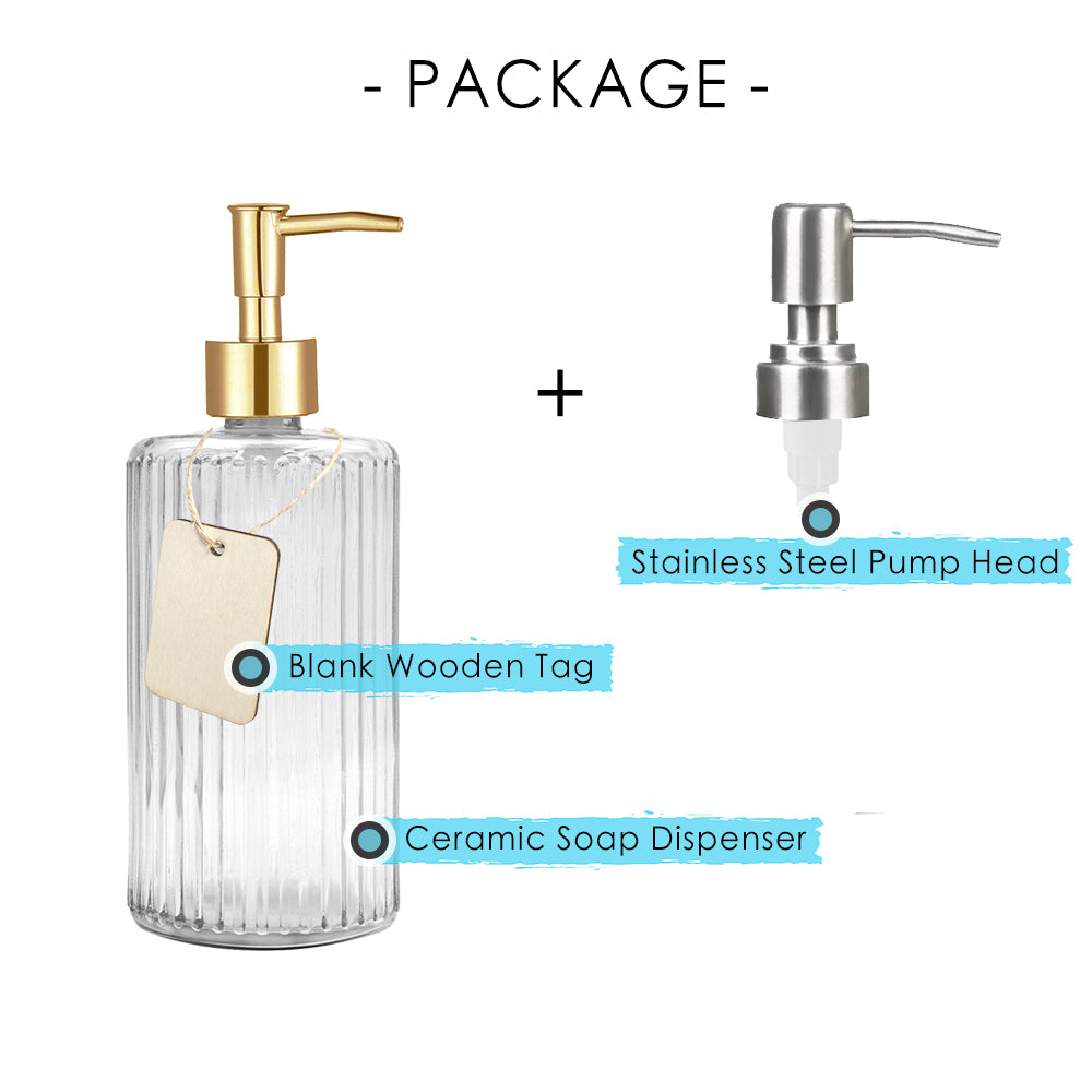 Clear Glass Soap Dispenser, Ultra Simple Design Pump Bottle, 400ml/14 oz