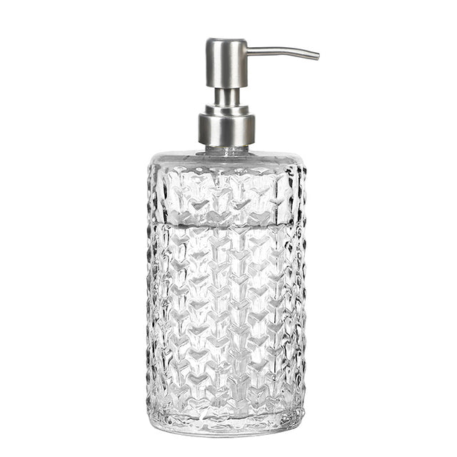 Clear Glass Soap Dispenser, Arrow Design Pump Bottle, 400ml/14 oz