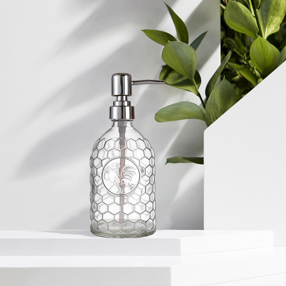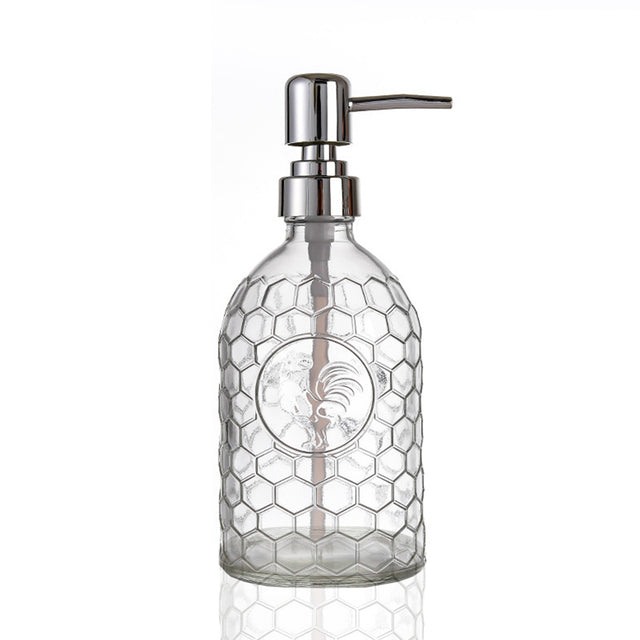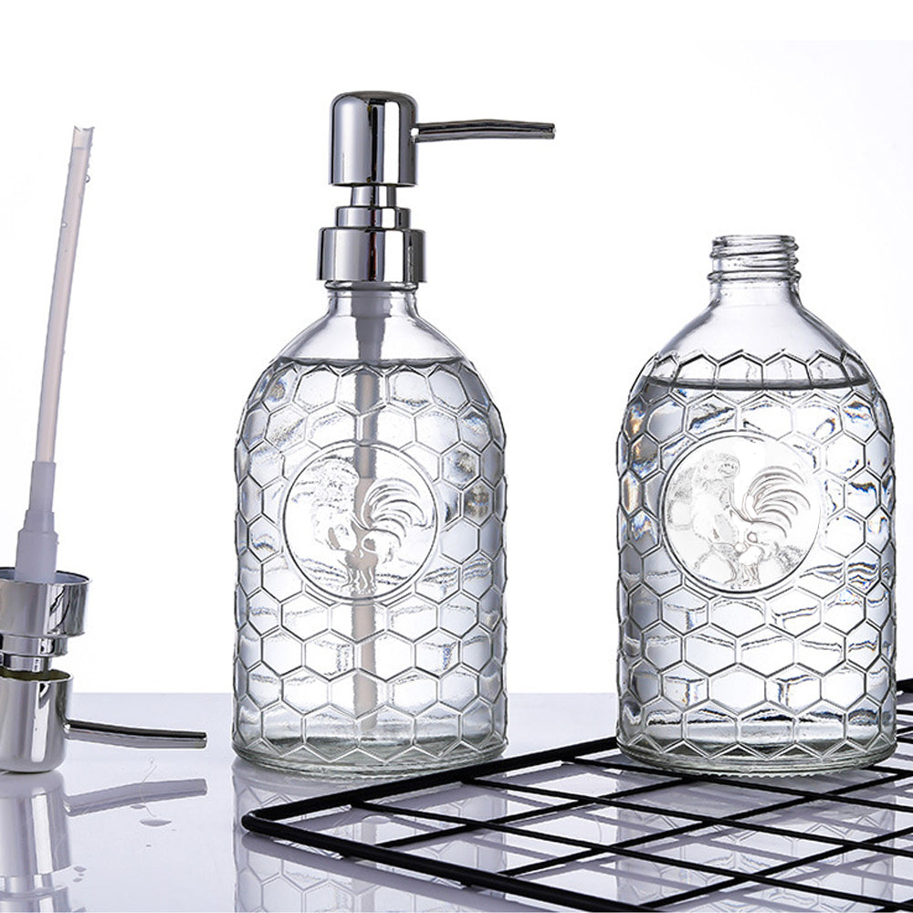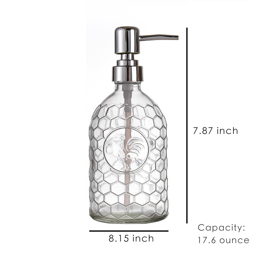 Clear Glass Soap Dispenser, Rooster Pump Bottle for Bathroom and Kitchen, 17.6 Oz/500ml
