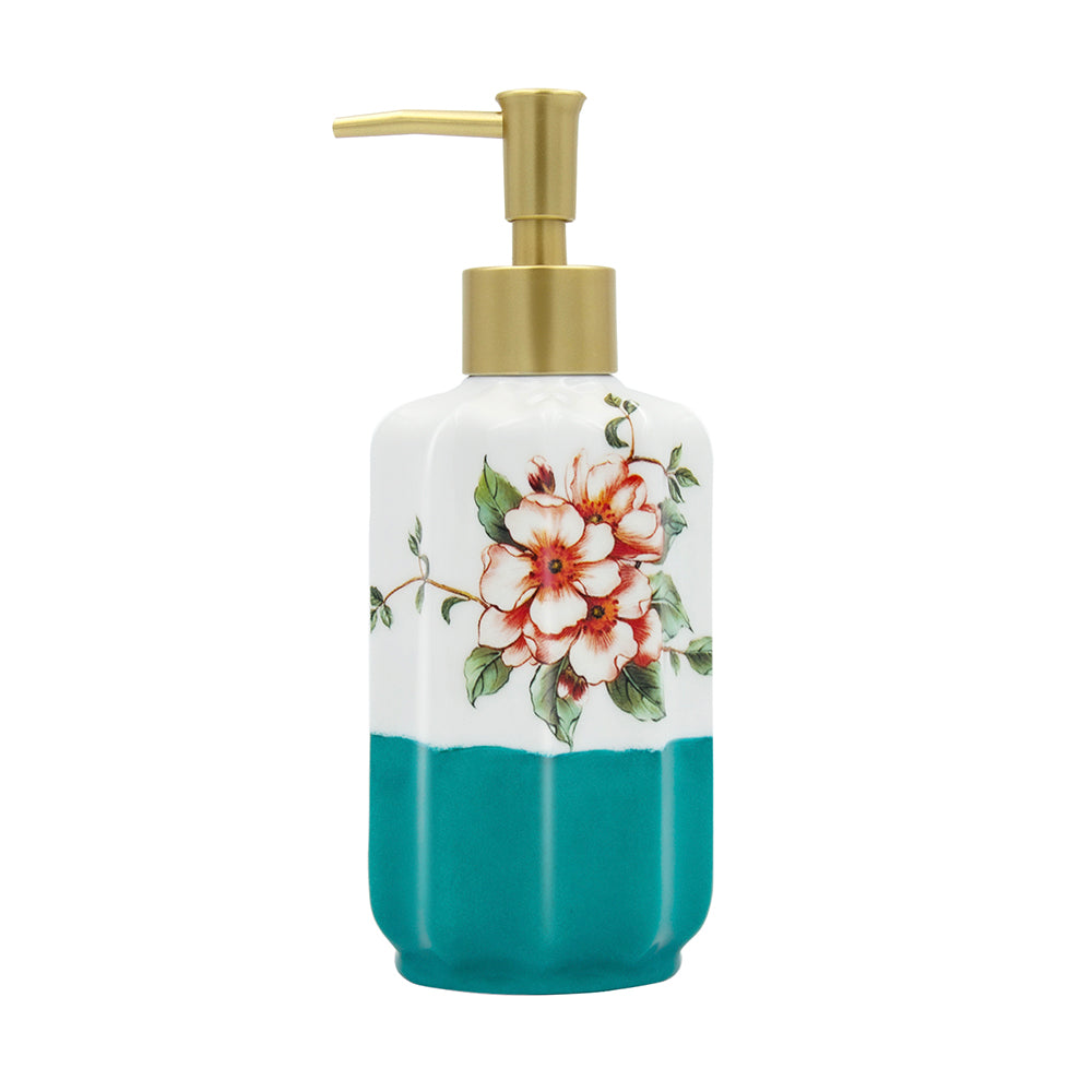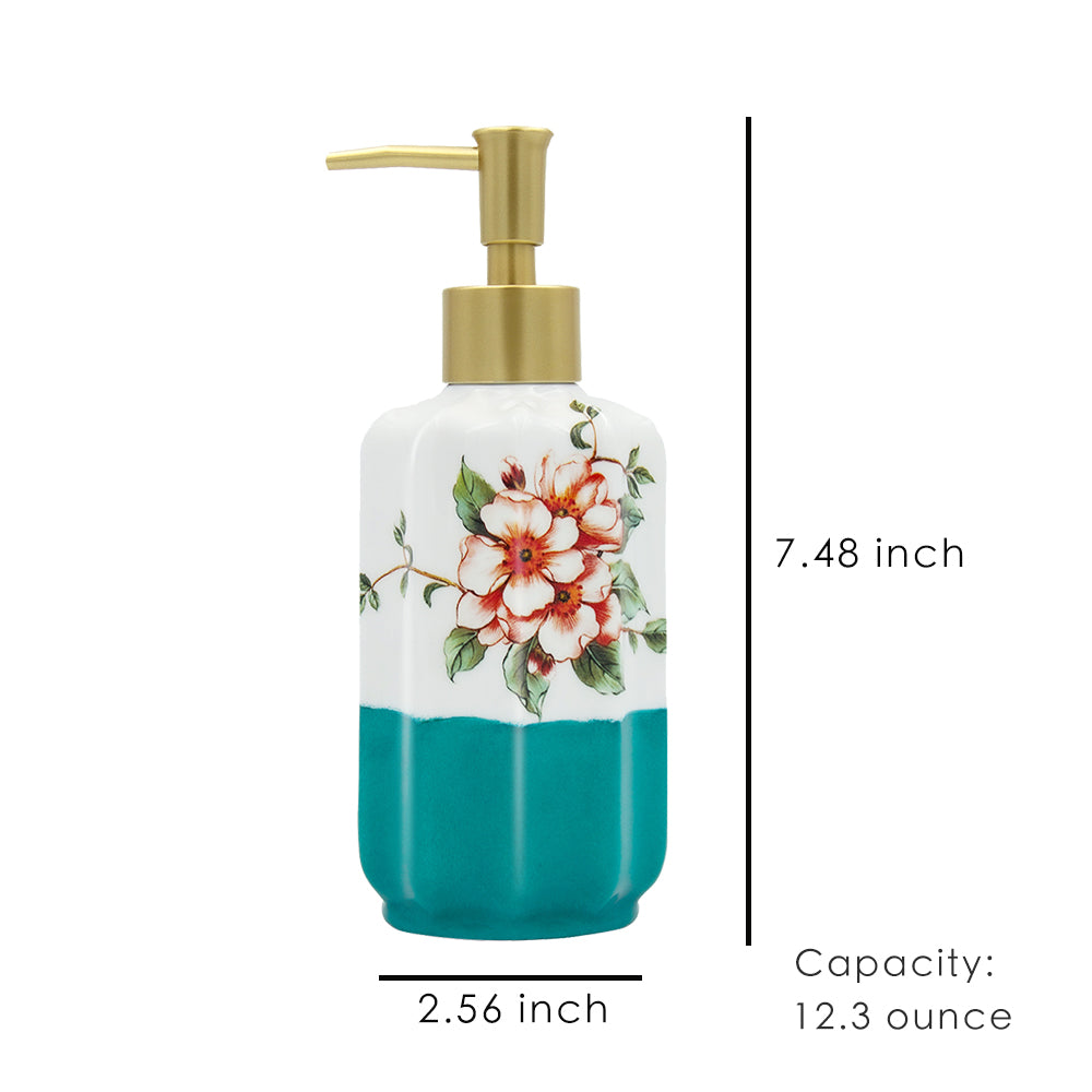 Floral Ceramic Soap Dispenser, Elegant-Design Pump Bottle, 350ml/12.3 oz