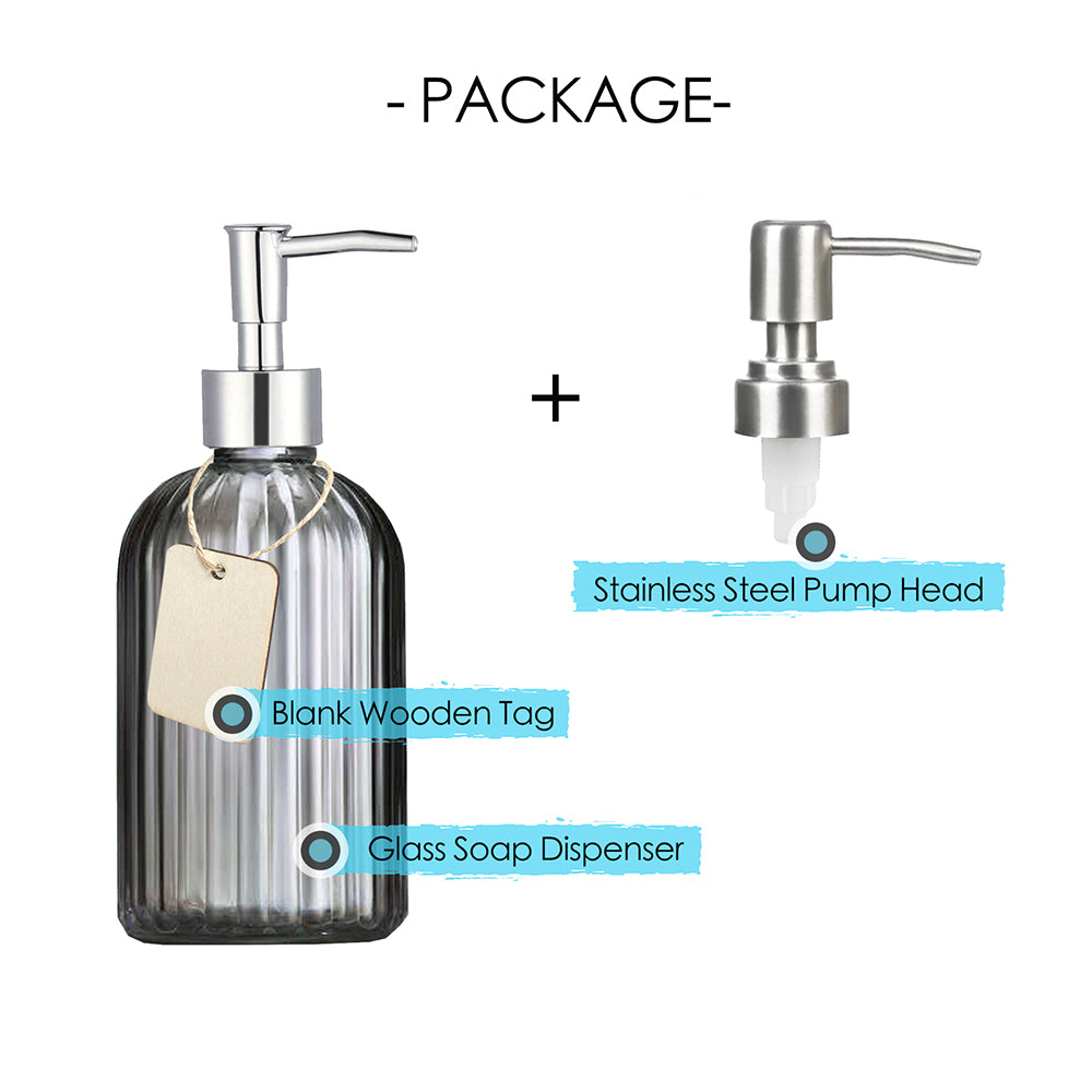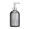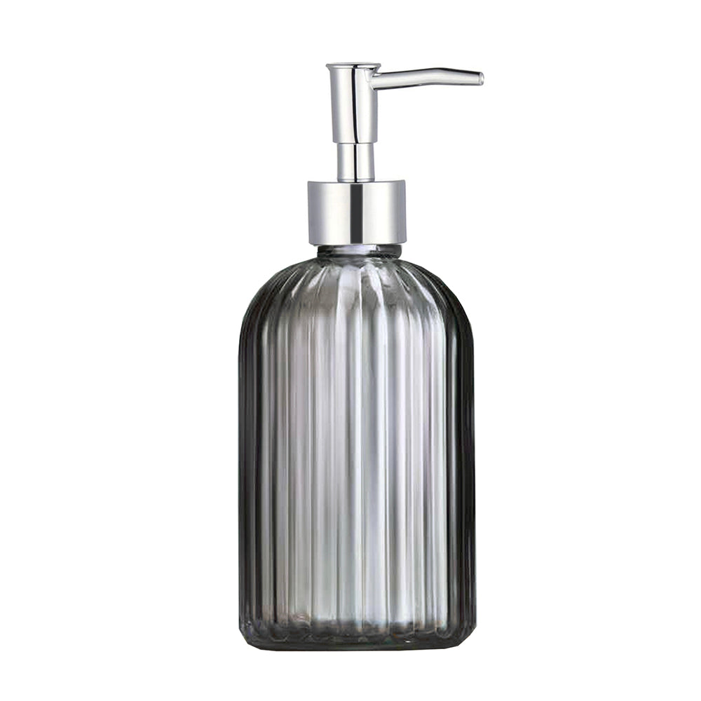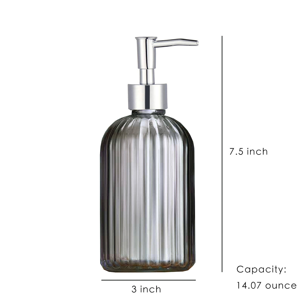 Gray Glass Soap Dispenser, Simple Lines Pump Bottle, 420ml/14.07 oz
