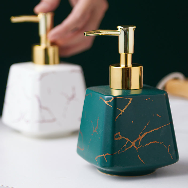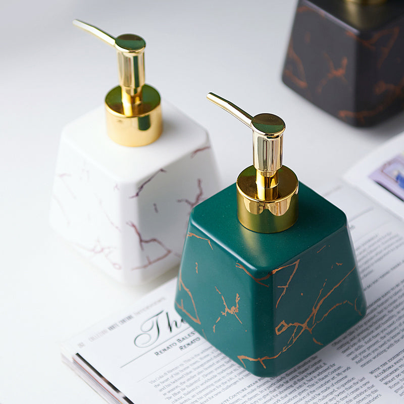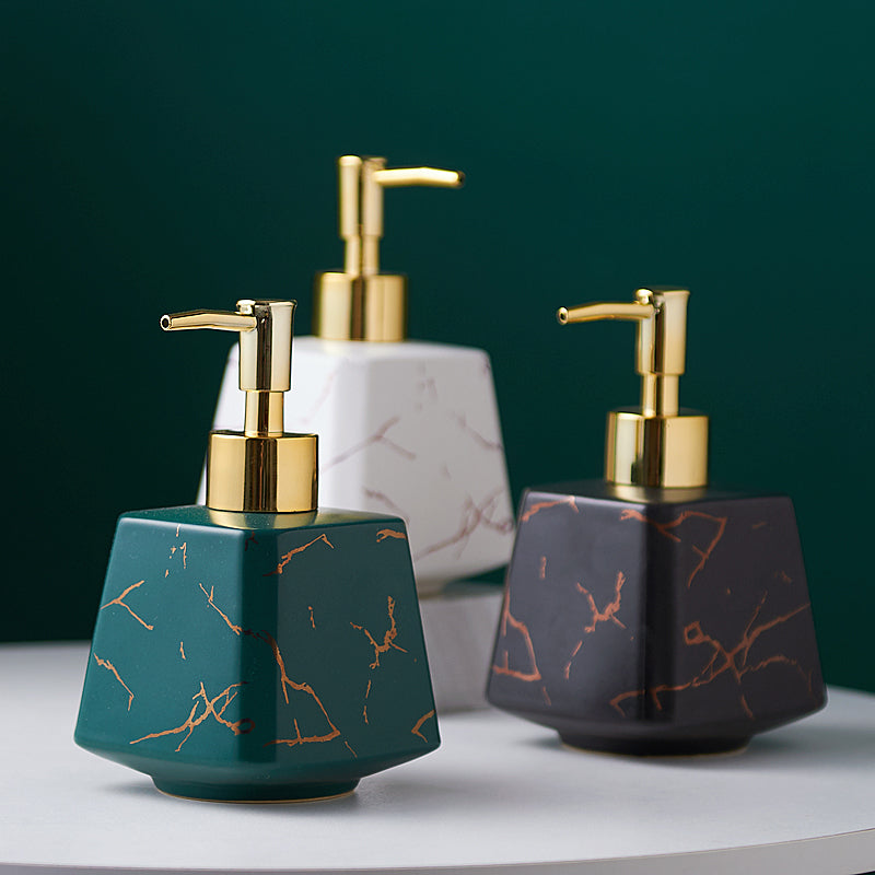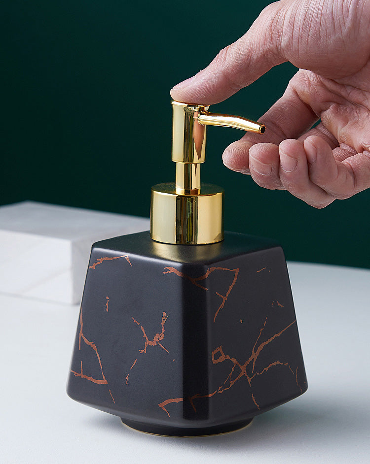 Elegant design: With pure background and golden marble texture on the bottle, the dispenser provides your bathroom with decent atmosphere;