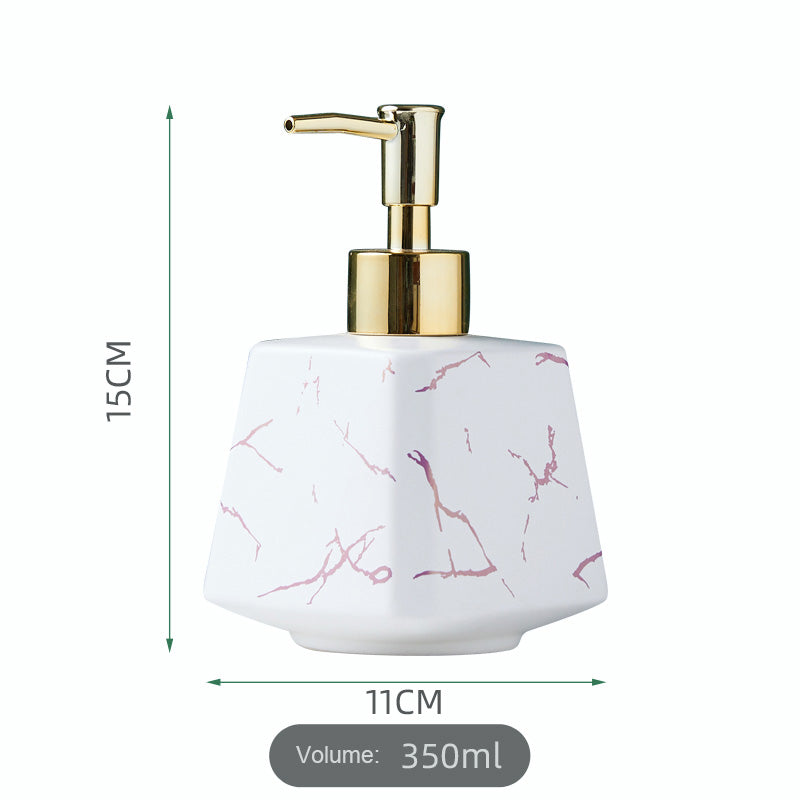 Cute Ceramic Soap Dispenser, Marble Texture Pottery Shampoo Lotion Bottle, 350ml