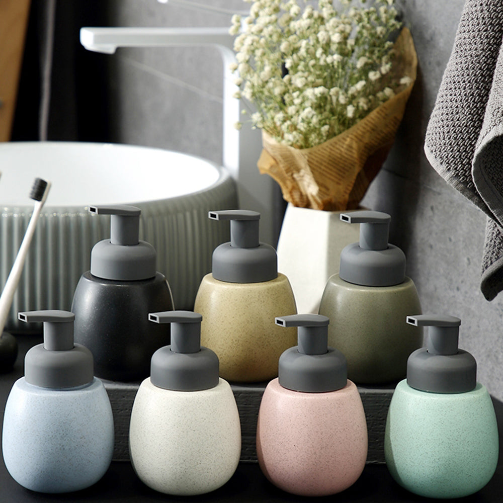 Off white Ceramic Soap Dispenser, Foaming Pump Bathroom Bottle, Simple Design, Refillable Reusable Lotion Pump for Bathroom Kitchen, 280ml/9.4oz