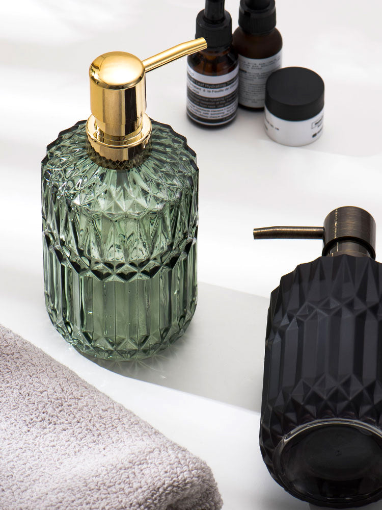 Nordic Style Luxury Glass Soap Dispenser, Lotion Hand Sanitizer Bottle for Bathroom Kitchen