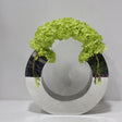 Embrace the dramatic look of this post modern tabletop vase. Its unique shape will make any floral arrangement the center of attention. It can also be displayed on its own to make a modern statement in any space.