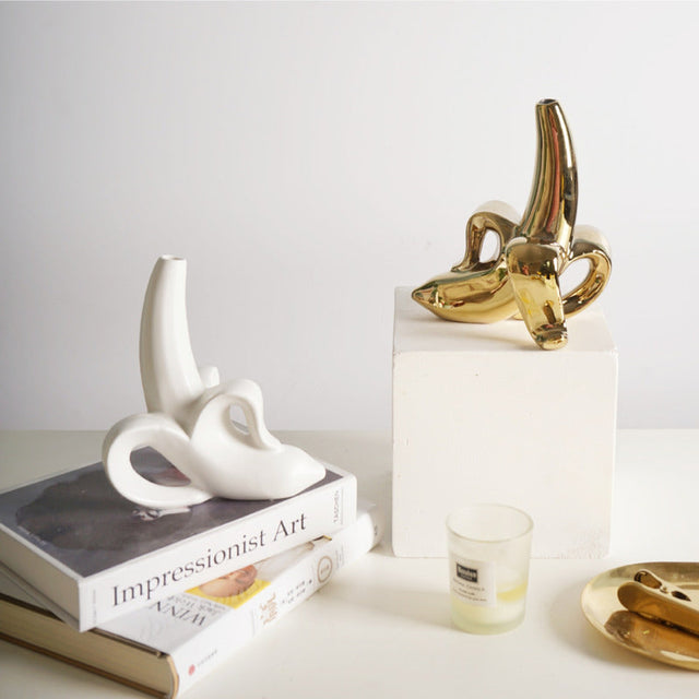 The simple peeled banana becomes a piece of art with these modern vases. The vases come in matte white and a golden glaze. Pair them together for a fun look to add a bit of whimsy in any space. Go bananas and have some fun.