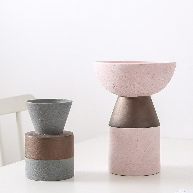 Make a dramatic statement with these modern vases.  The vases have copper painted accents to enhance the modern look. The vases come in several styles that complement each one when grouped together.  Give any space an art gallery feel with these dramatic vases.