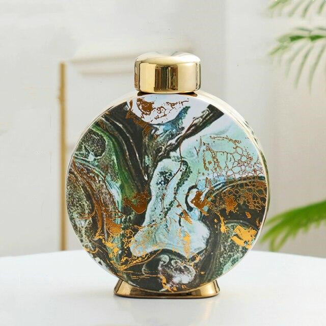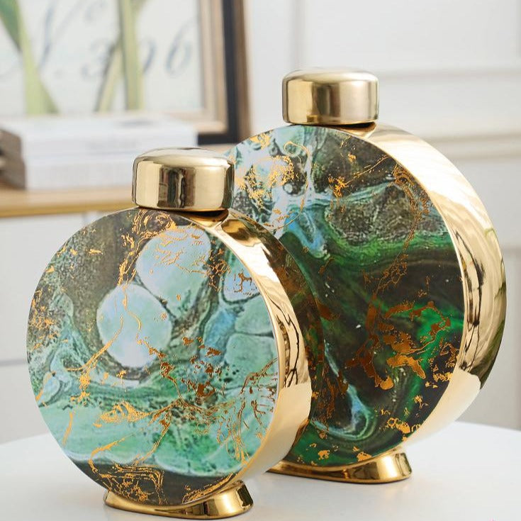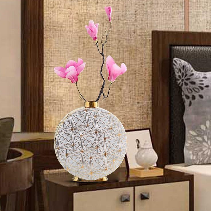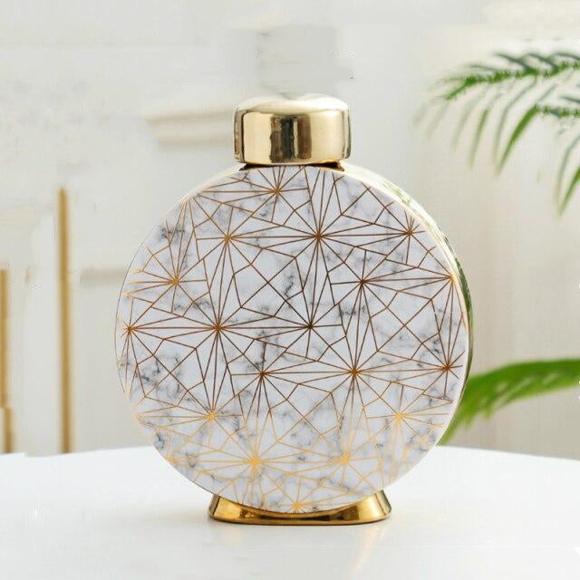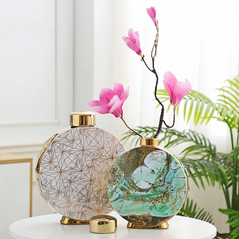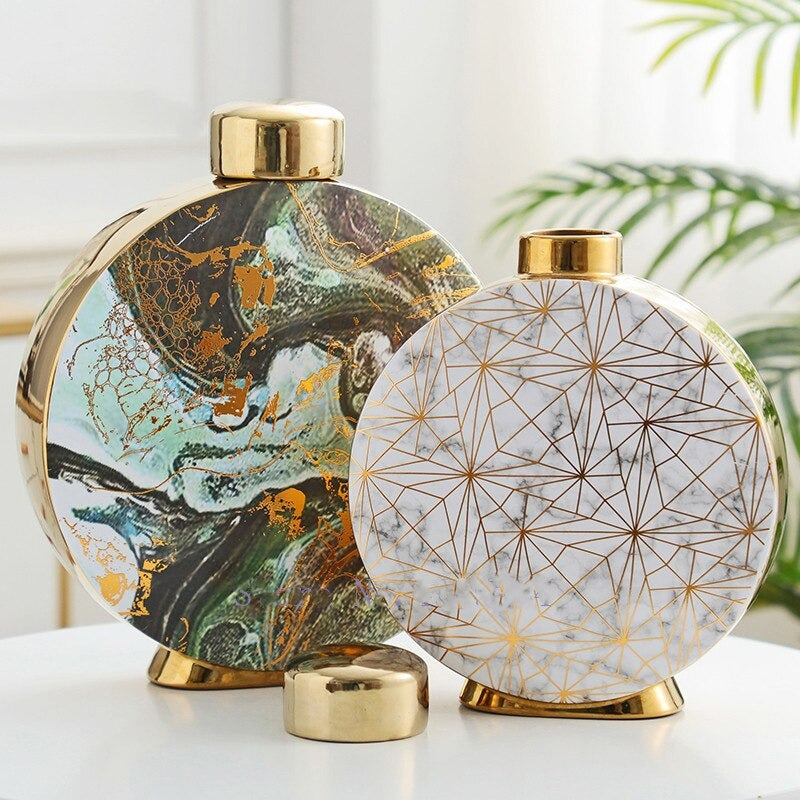 Embrace the beauty of these vases that are meant to be displayed as works of art. Each vase is highlighted by gold accents to highlight the intricate gold geometric pattern or the marbled pattern. Each one of these vases will create a look of modern sophistication in any space.