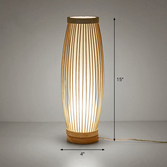 Bamboo Elongated Oval Nightstand Lamp Asian Style 1 Bulb Table Lighting in Wood for Tea Room
