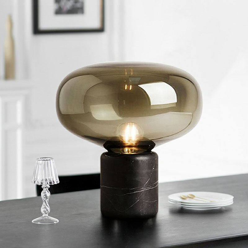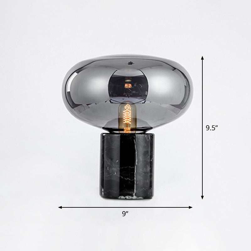 Capsule Shaped Glass Nightstand Light Nordic 1-Bulb Table Lamp with Cylindrical Marble Base