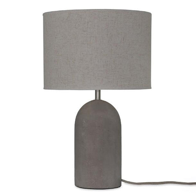 Drum Nightstand Lamp Modern Style Fabric 1 Bulb Bedside Table Light with Cement Base in Grey