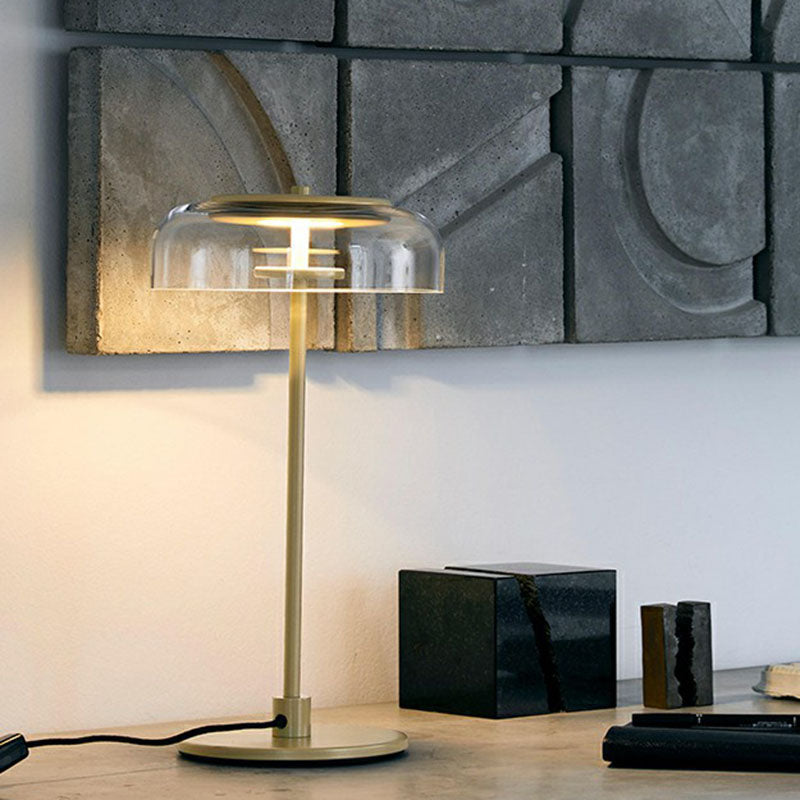Flat Bowl Shaped LED Night Light Simplicity Clear Glass Dining Room Table Lamp in Gold