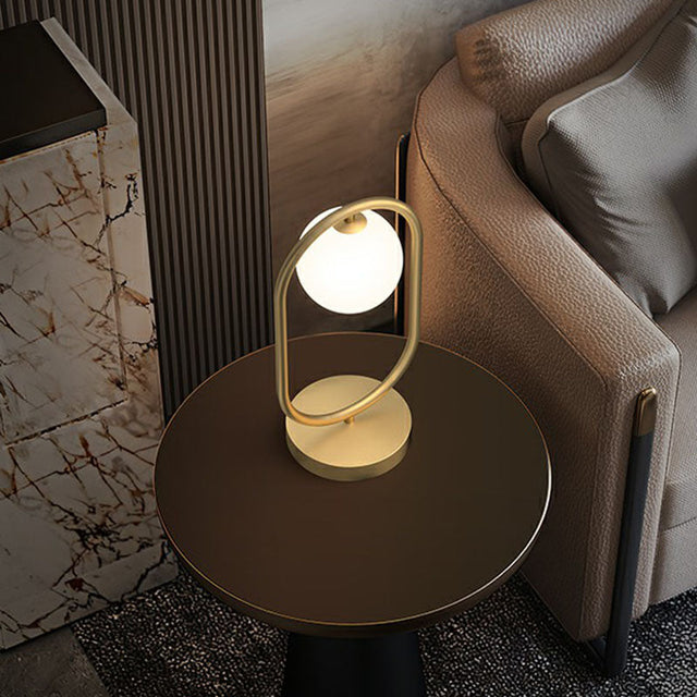 Minimalist Oval Frame Table Lighting Metal 1-Head Bedroom Night Light with Ball Milk Glass Shade in Gold - Gold est en rupture de stock et sera expédié dès qu’il sera de retour en stock.