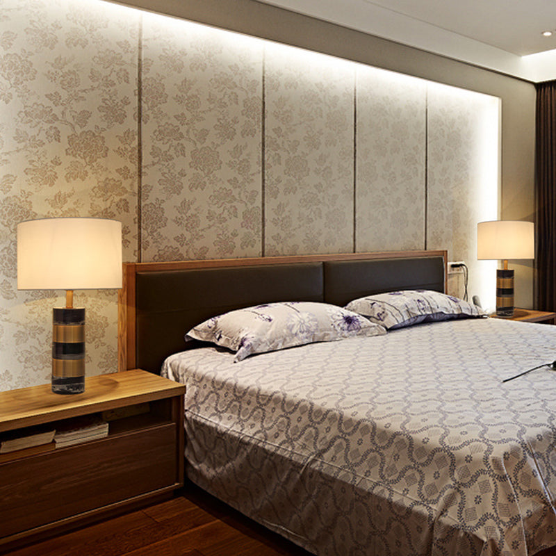 Modern Drum Nightstand Lamp Fabric 1 Head Living Room Table Lighting with Marble Base in White