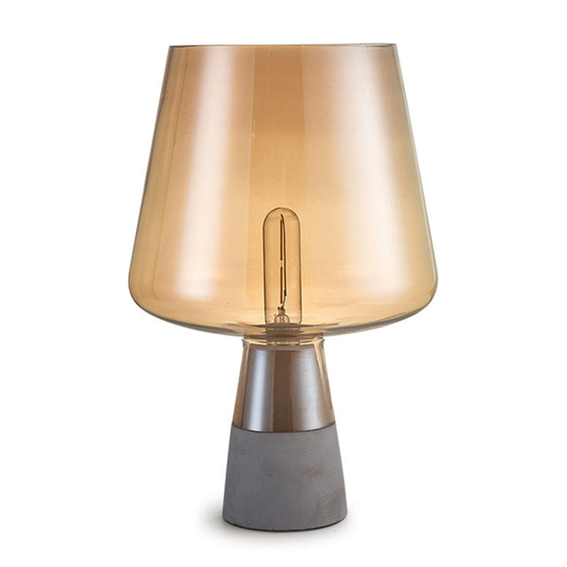 Rustic Wineglass-Like Nightstand Lamp Amber Glass Single-Bulb Bedroom Table Lighting with Cement Base