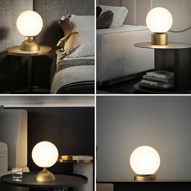 Simple Spherical Small Night Light Glass Single Bedroom Table Lamp with Gold Finish Base