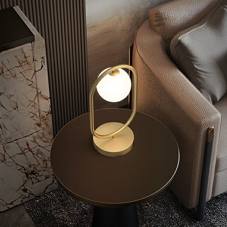 Ball Shaped Bedside Night Lamp White Glass Single Minimalistic Table Light with Ring Decor in Gold