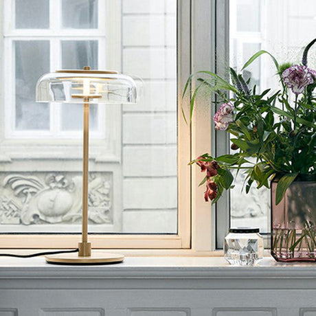 De $213.24 USD$349.57Prix unitaire /IndisponibleFlat Bowl Shaped LED Night Light Simplicity Clear Glass Dining Room Table Lamp in Gold