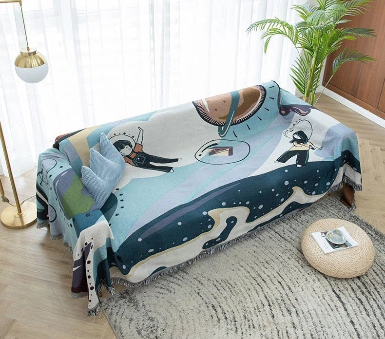 Nordic Blanket, Wall Art Blanket, Couch Throw, Large Woven Tapestry Jacquard Throw, Gift for Her, Birthday Gift, Decor