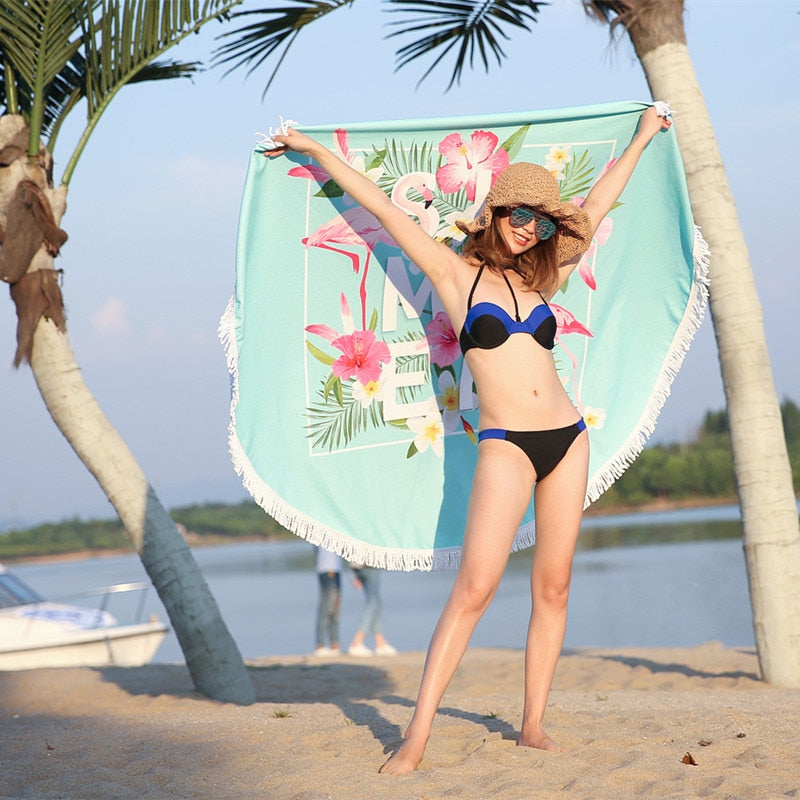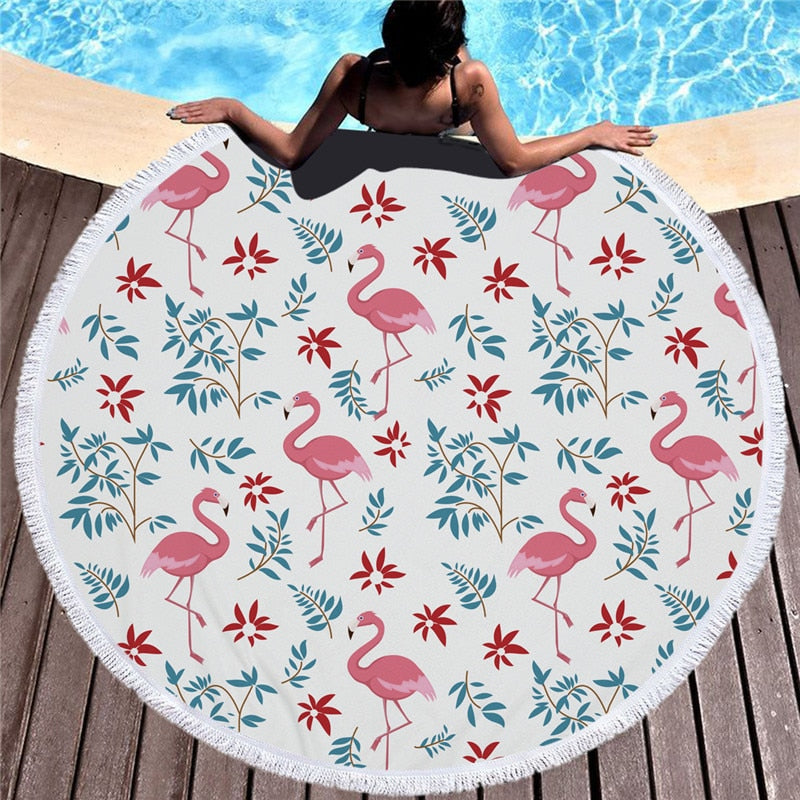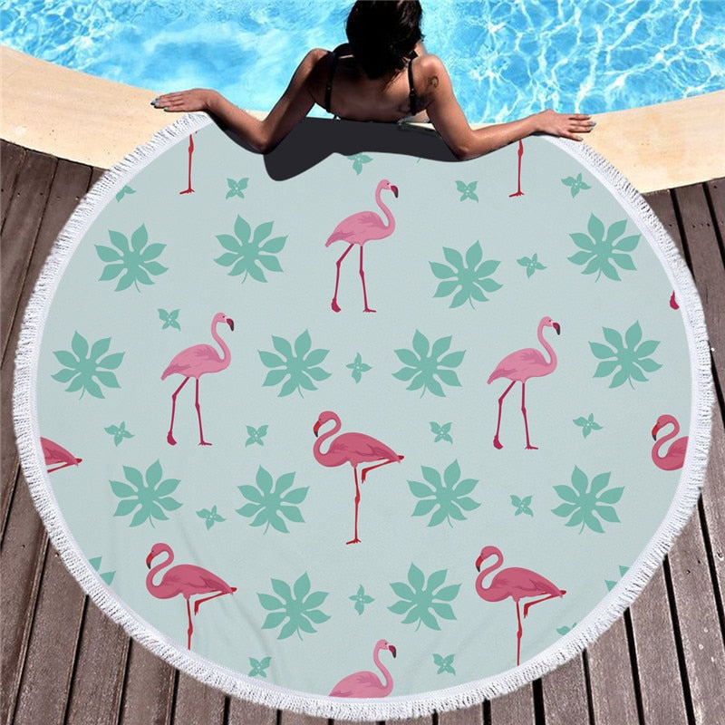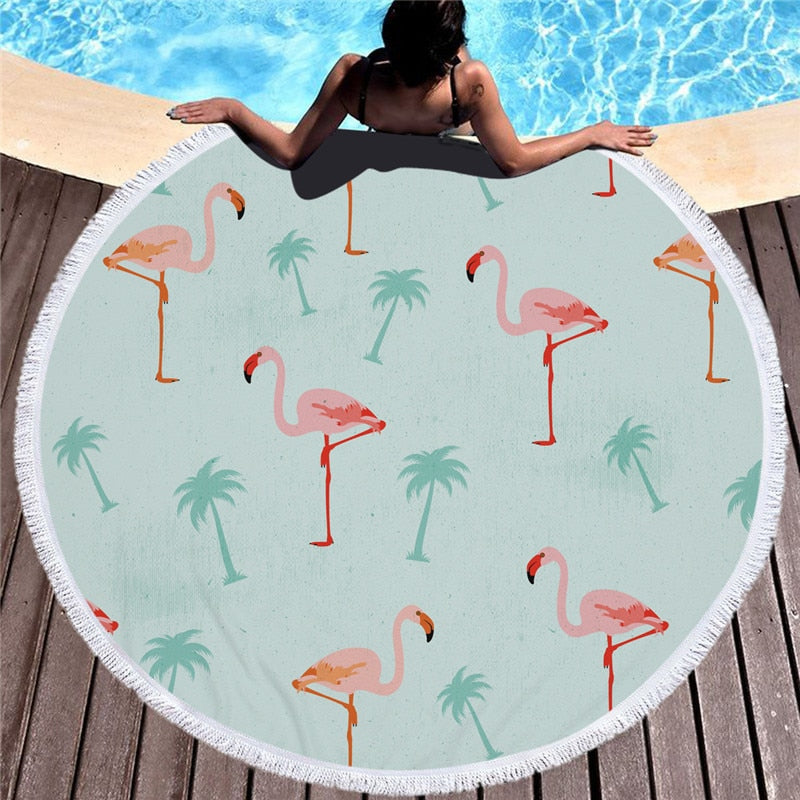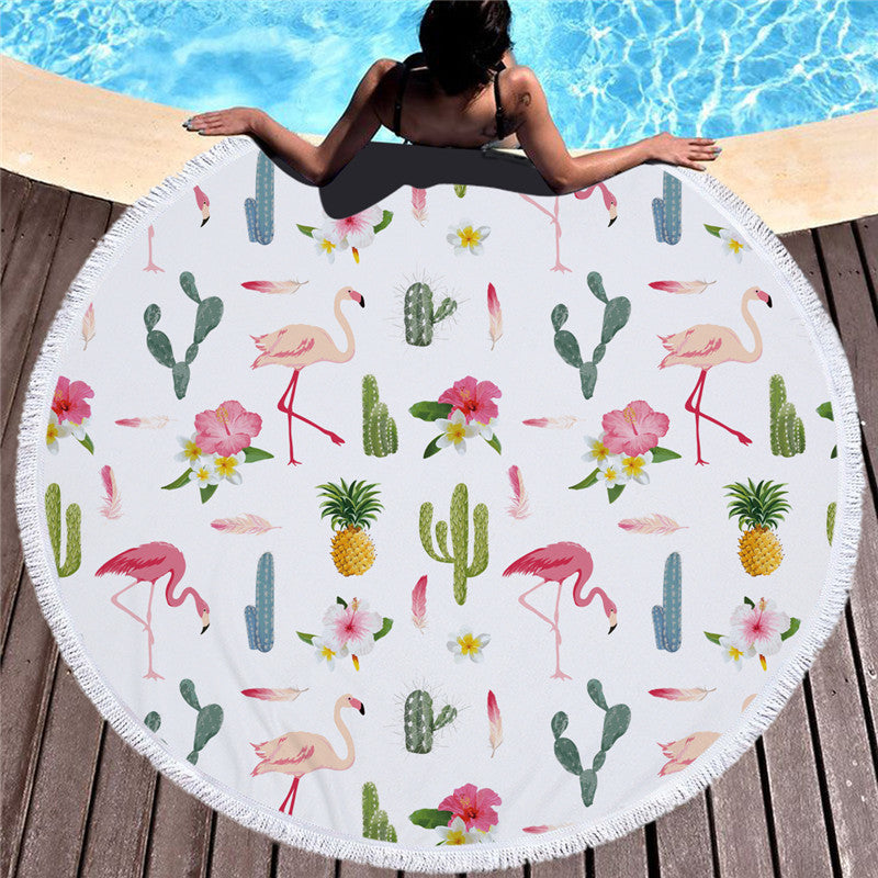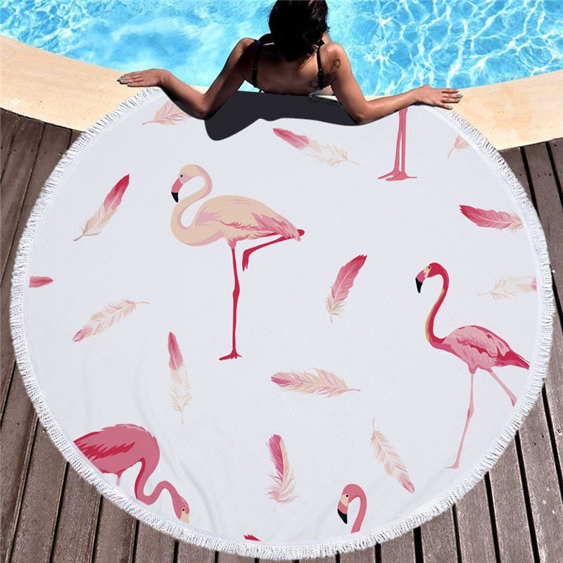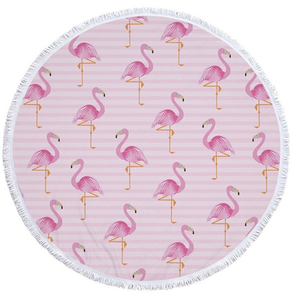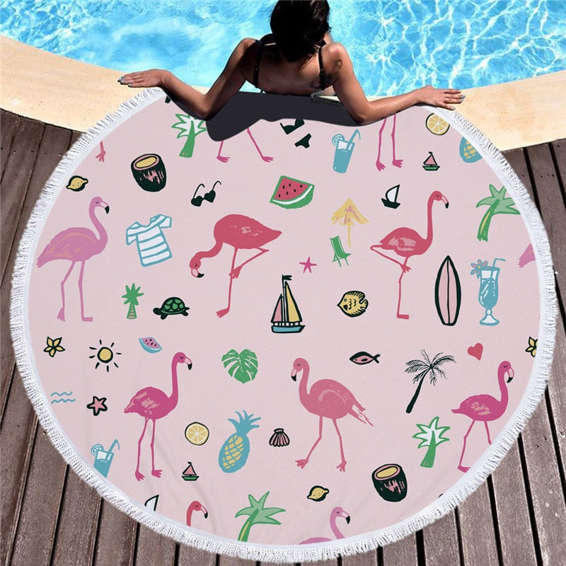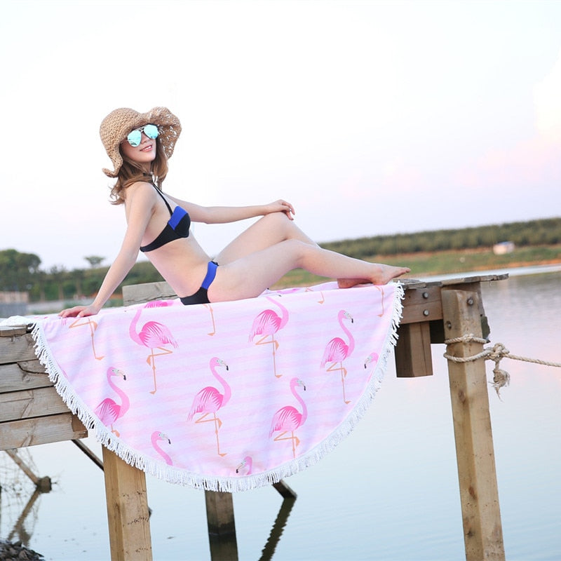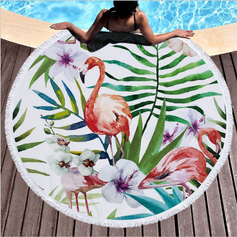 Flamingo 450G Round Beach Towel With Tassels Microfiber 150cm Picnic Blanket Mat Tapestry