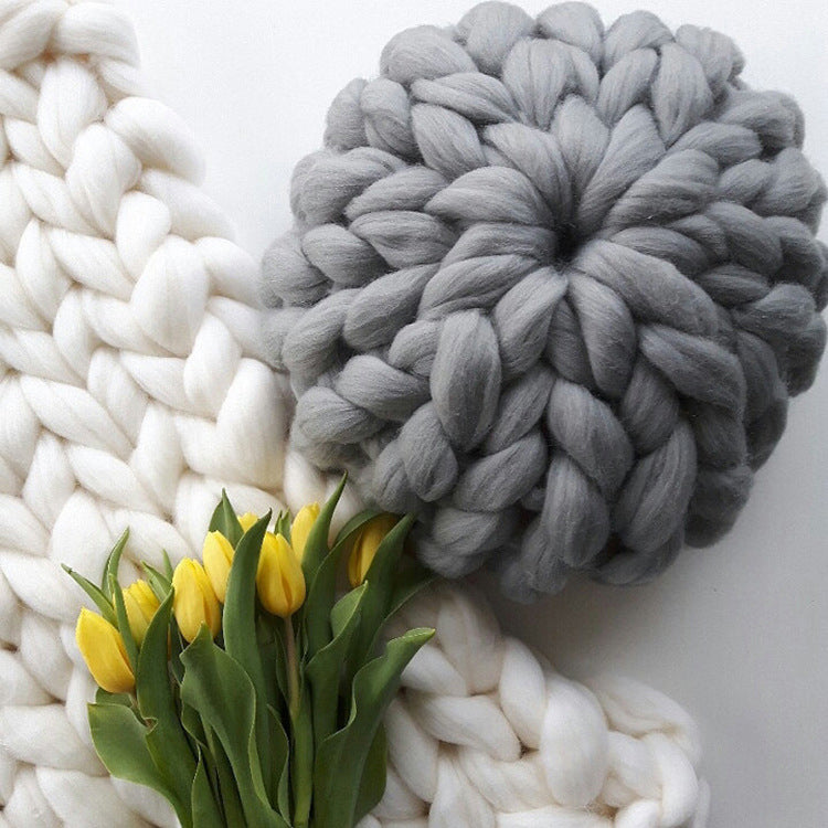 Embrace the warmth with these handmade knitted pillows. These pillows are covered in a chunky knit pattern that will make any space feel warm and cozy. Cuddle up with these comfy pillows with a high huggability factor that will make a space ready for those frosty winter nights.