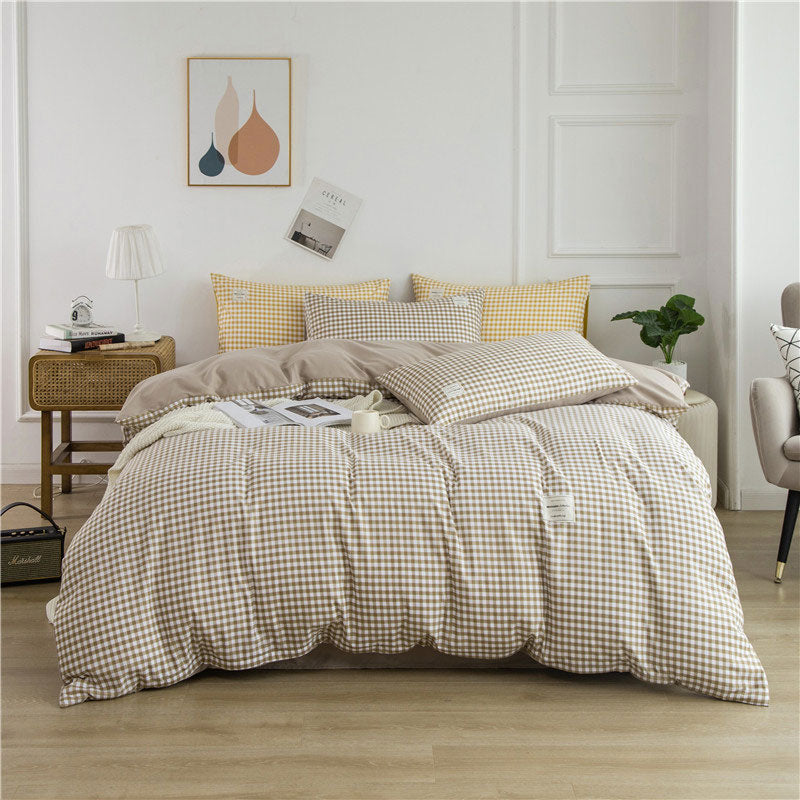 Beige Plaid Quilt Cover Bedsheet & 2*Pillowcases (4PCS)